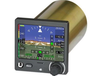 - Záložní displej zobrazující výšku, polohu letadla, skluz/výkluz, vertikální rychlost a trasu letadla